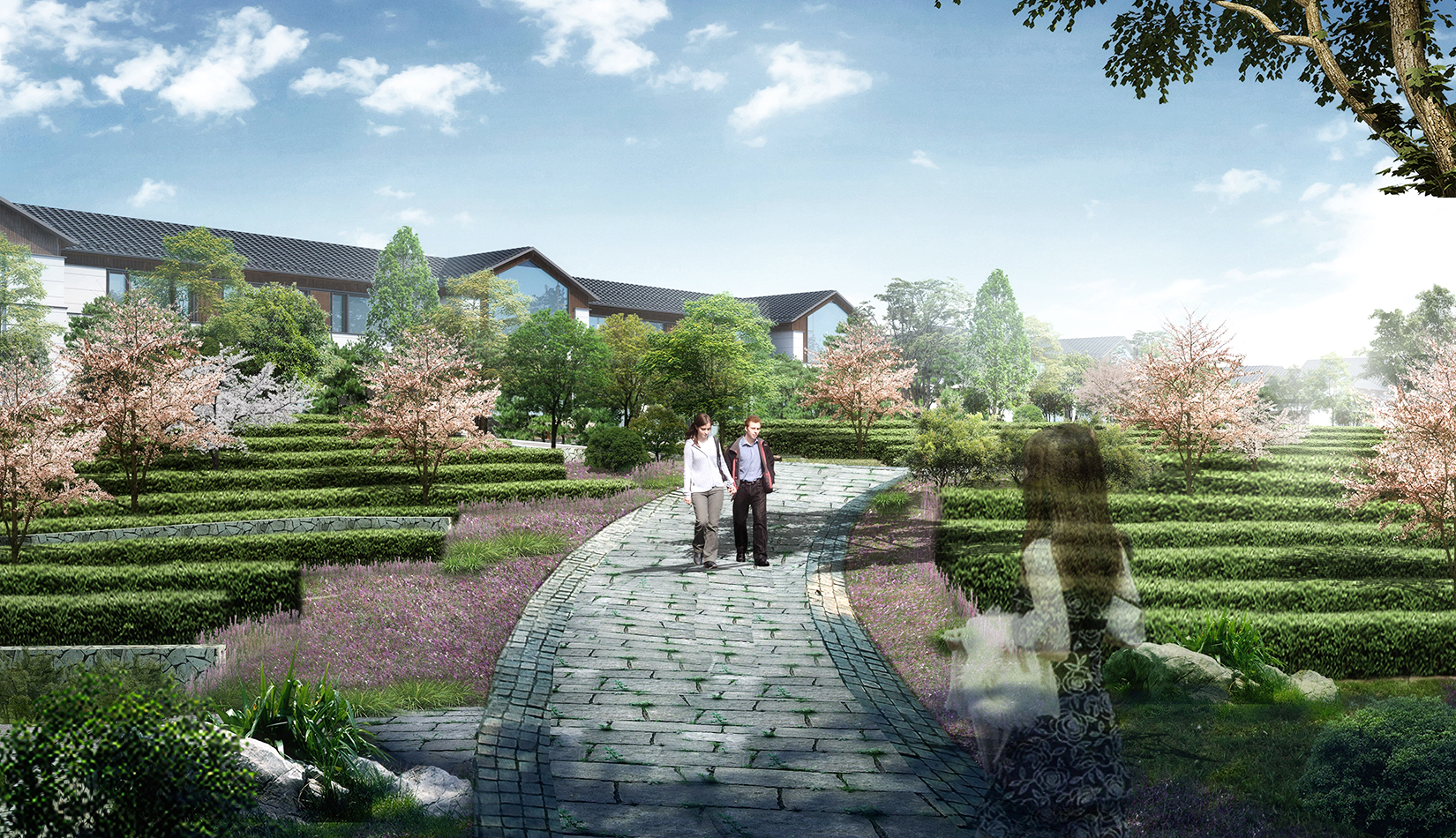 以“鄉(xiāng)村振興” 為背景,以“藏馬山居生活”為目標核心,項目把東方田園與住區(qū)生活融為一體、貫穿自然生態(tài)、海綿城市的設(shè)計理念。景觀設(shè)計挖掘藏馬山的特色文化,延續(xù)當?shù)鼐G色生態(tài)、山野趣味的自然風貌,通過場景化的展示,融入到景觀設(shè)計中,打造特點鮮明、各有特色的入口體驗、商業(yè)街區(qū)、山居生活三大板塊。