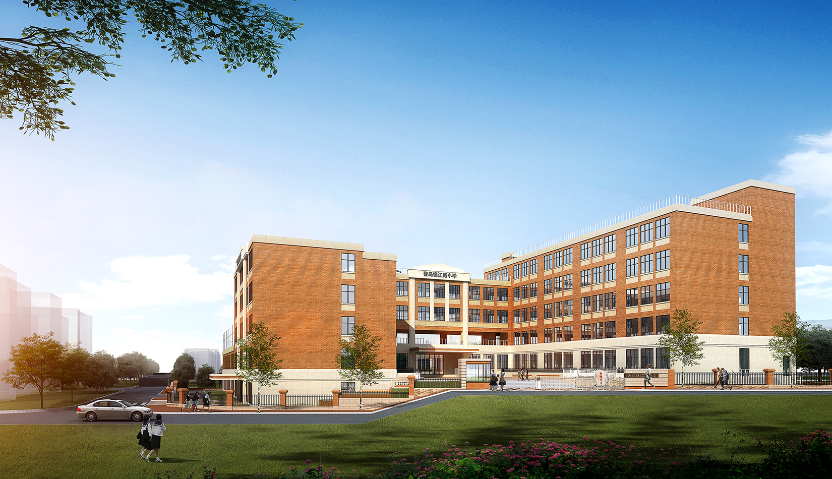該項目的設(shè)計延續(xù)區(qū)域肌理,與區(qū)域城市肌理相融合,提高區(qū)域環(huán)境。立面設(shè)計考慮市南區(qū)及鎮(zhèn)江路原有學校風格,采用學院派建筑風格,塑造古典人文氛圍,校園墻體通過磚的變化設(shè)計文化墻,將文化傳承與精神傳承融合在建筑之中。根據(jù)地勢和日照進行功能布局排列,下沉庭院、連廊和架空設(shè)計的鄰近操場的校園環(huán)境設(shè)計,一方面塑造了豐富多彩的校園環(huán)境,另一方面充分保證了室內(nèi)環(huán)境的采光,讓孩子們更多地享受陽光。