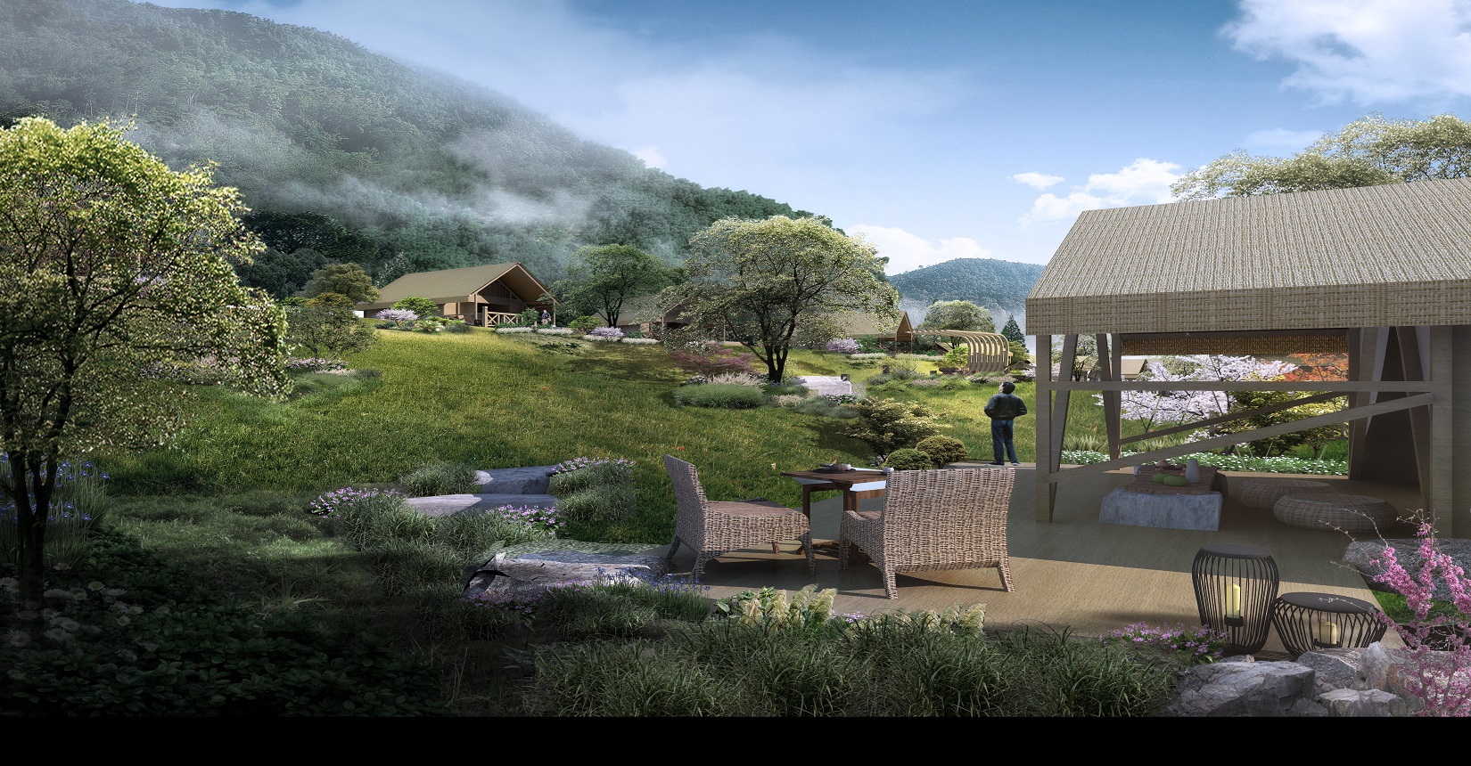本項目的定位為自然、野奢的景觀風格。對于野奢度假酒店景觀環(huán)境設(shè)計遵從“野”“奢”兩點,融入荒野生態(tài)的設(shè)計理念,又要與場地相融合、與原生態(tài)相映、與當?shù)氐拿袼罪L情相交匯,突出當?shù)氐奈幕黝},強調(diào)高品質(zhì)的自然、野奢度假,從而打造出一個具備個性與特色,使游客能夠享受到自然野趣體驗的景觀環(huán)境。